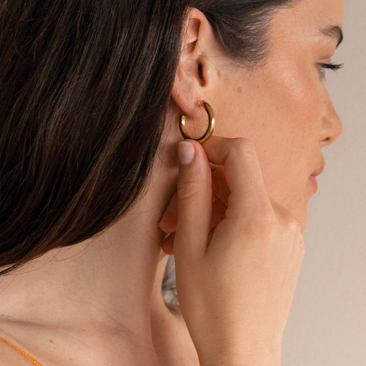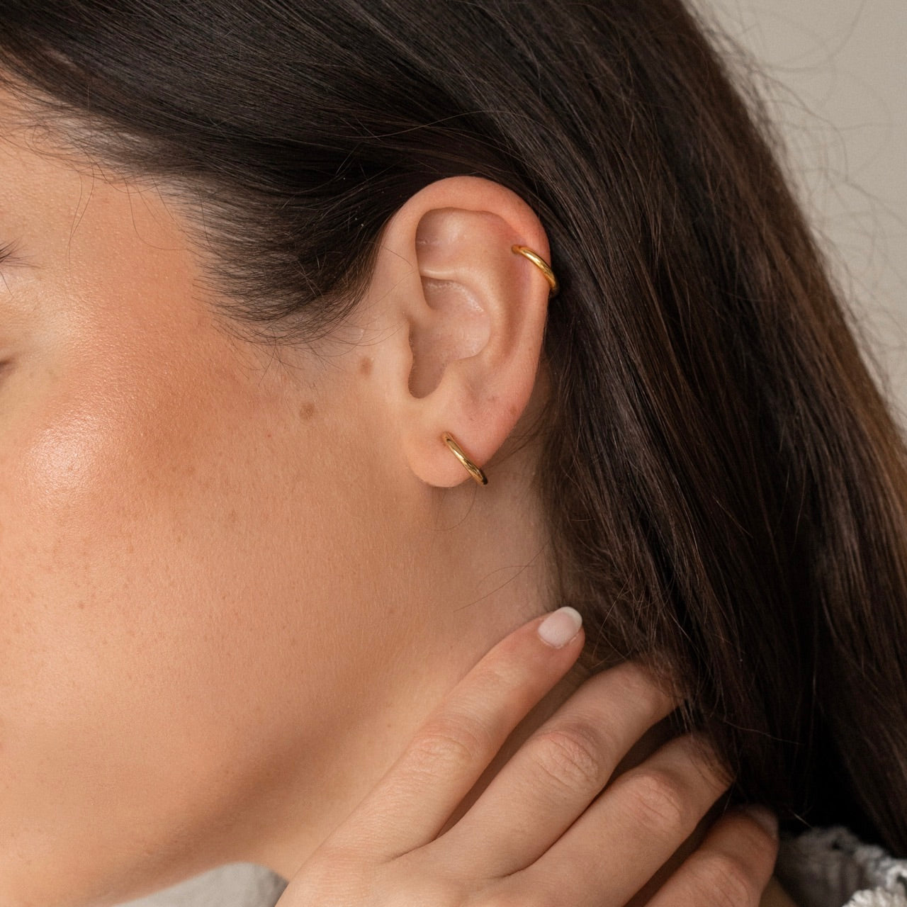 Our clip on earrings are pain-free, stay in all day and are made from high-quality gold-plated stainless steel, making them waterproof, non-tarnish and hypoallergenic.