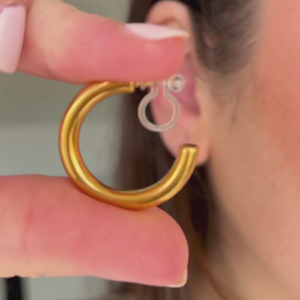 Like alll our steel jewelry, our clip on earrings are made from PVD-plated stainless steel which prevent them from losing colour and leaving green marks to your skin.